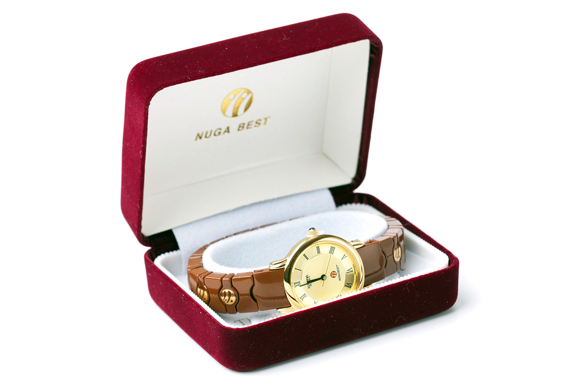 Grožis ir sveikata apsijungė stilingame laikrodyje „Nuga Best“ su itin tiksliu šveicarišku mechanizmu ir turmanio apyranke. „Nuga Best“ laikrodis su turmanio apyranke – tai stilingas aksesuaras ir puikus gyvybinių jėgų stimuliatorius.