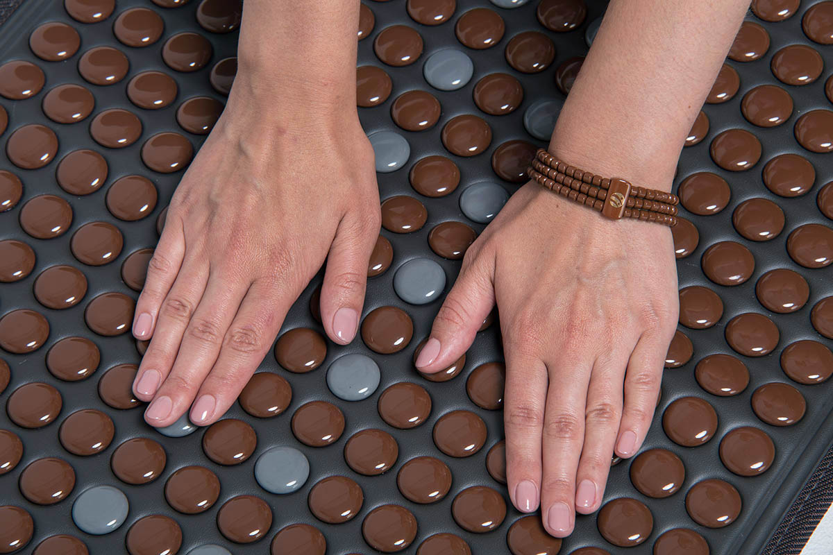 Turmānija paklājs T-11 ir universāls masažieris, kurā ir apvienota klasiskā turmānija keramika un sudrabotas krāsas nanodimanta keramika (NDT).
