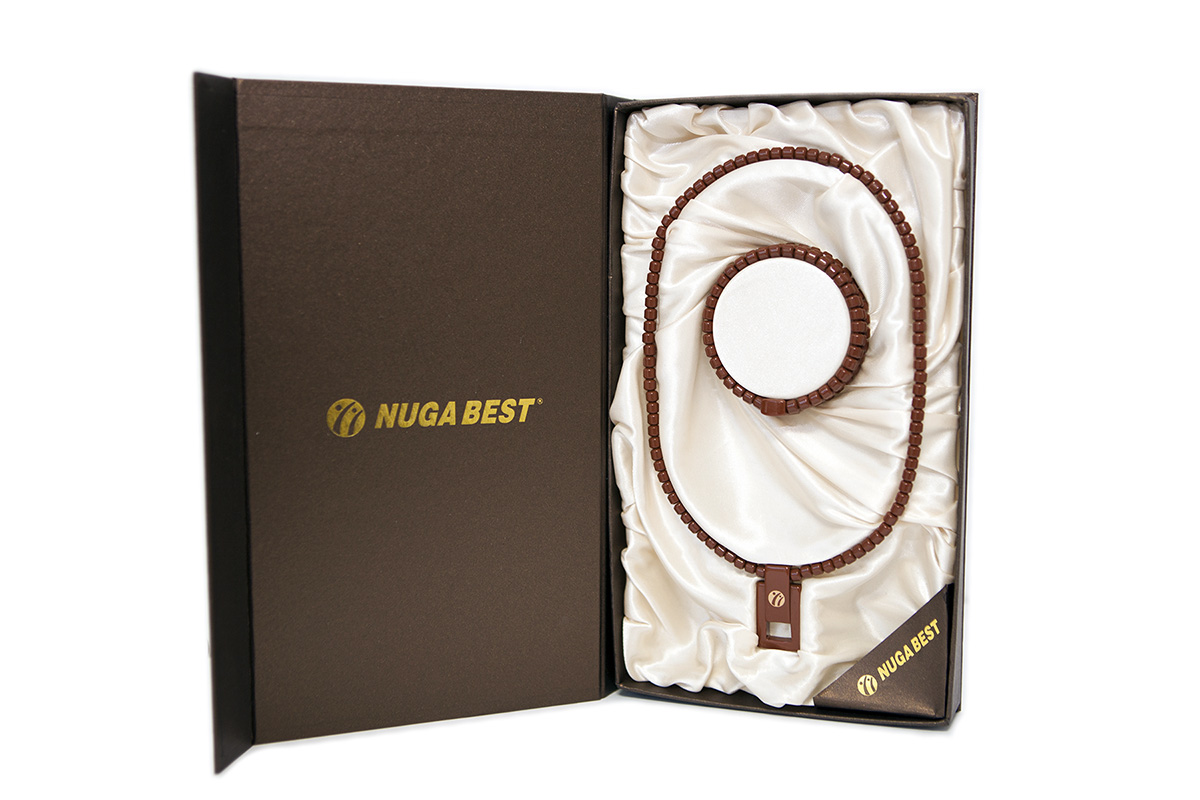 Madinga ir elegantiška. Šiuolaikinio stiliaus vėrinys su originalios formos pakabuku ir apyrankė tiks įvairaus amžiaus žmonėms. Gaminio dizainui yra perteiktas bendrovės „Nuga Best“ misijos filosofinė prasmė. Turmanis teigiamai veikia skydliaukės funkciją, gerina kraujotaką ir pakelia nuotaiką.